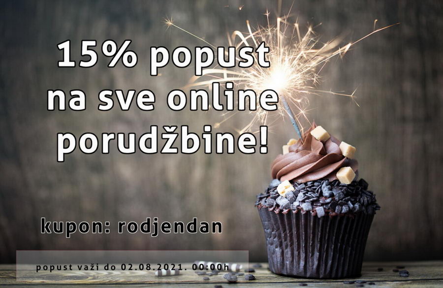 Kao mali znak zahvalnosti za divnu saradnju i vernost tokom ovih 9 godina, spremili smo malu akciju za Vas: popust od 15% na kompletan asortiman.