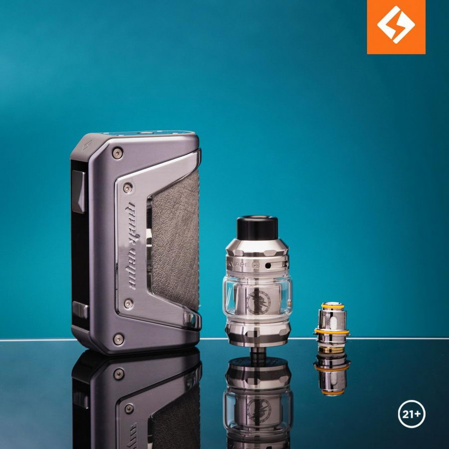 Geekvape Aegis L200 + Z Subohm Kit. Komplet koji čine Geekvape Aegis L200 baterijski mod max snage 200W i Z Subohm atomizer kapaciteta 5.5ml je namenjen zahtevnijim korisnicima, za korišćenje uvlačenjem direktno u pluća (DTL).