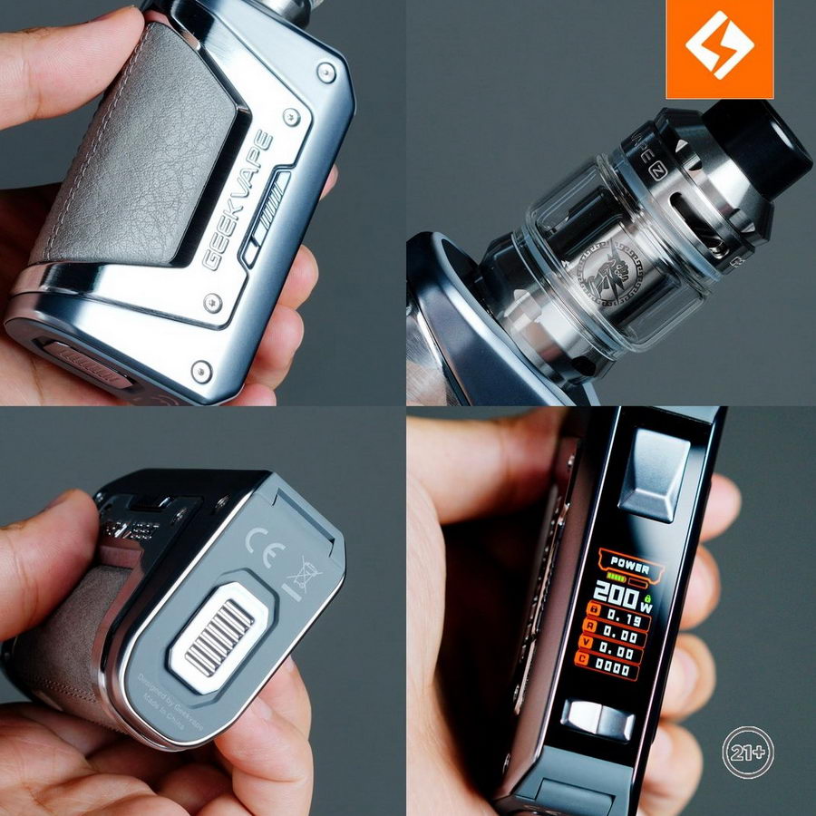 Komplet koji čine Geekvape Aegis L200 baterijski mod max snage 200W i Z Subohm atomizer kapaciteta 5.5ml je namenjen zahtevnijim korisnicima, za korišćenje uvlačenjem direktno u pluća (DTL).