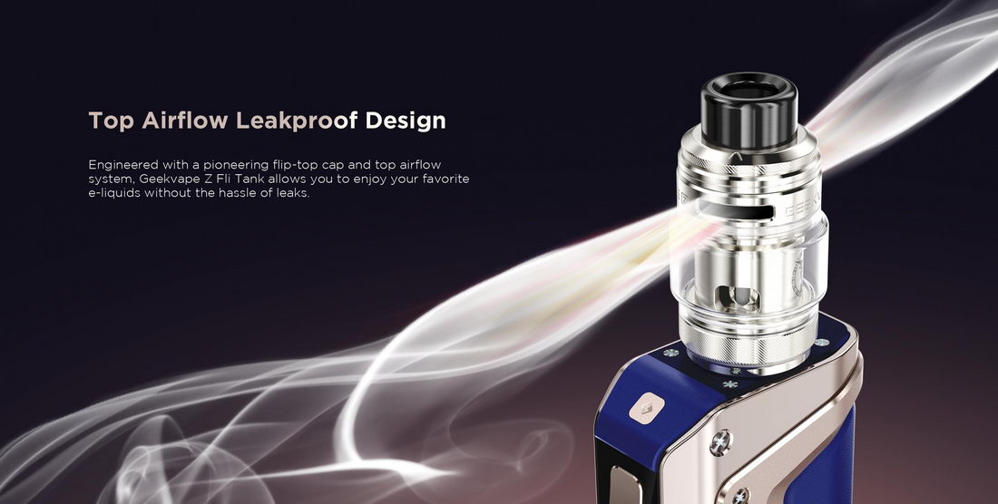 Z Fli je atomizer za intezivno DTL korišćenje. Kapacitet tanka je impresivnih 5.5ml. Protok vazduha se podešava gore, na prstenu ispod usnika. Za punjenje tanka potrebno je poklopac podići na gore, po završetku se poklopac vrati u svoje ležište.
