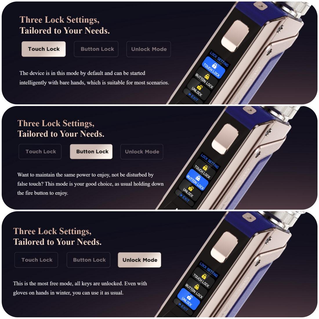 Dodatno, u LOCK SETTING podešavanju uređaja korisnik na raspolaganju ima 3 opcije: