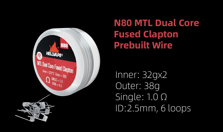Hellvape Ni80 MTL Dual Core Fused Clapton grejači za RBA atomizere. Predviđeni za upotrebu na manjim snagama i MTL atomizerima.