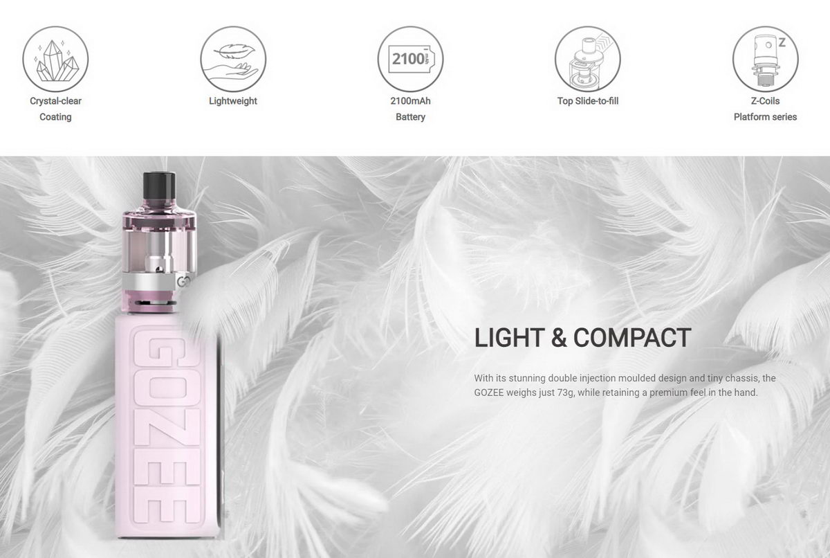 Kombinacija male i ultra lagane GOZEE VW baterije kapaciteta 2100mAh i GoZ+ atomizera kapaciteta 3.5ml, sjajan izbor kako za početnike tako i za iskusnije korisnike.