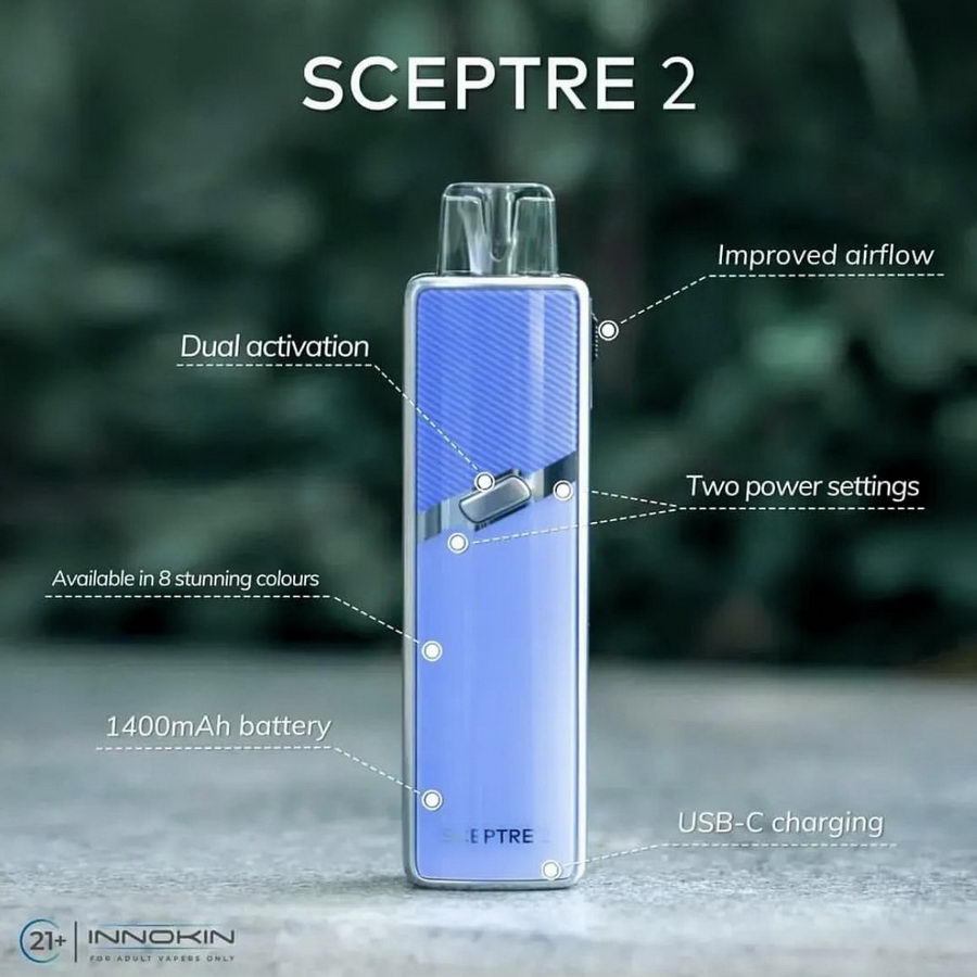 Naslednik poznatog Innokin Sceptre POD modela je konačno tu. Sceptre 2 je sačuvao sve ono što je starijem bratu donelo veliku popularnost, fantastičnu bateriju od 1400mAh i Sceptre S Coil zamenske glave. No, ovaj model u telu nešto manjih dimenzija nego prethodnik donosi i nekoliko unapređenja, koje će užitak podići na još viši nivo.