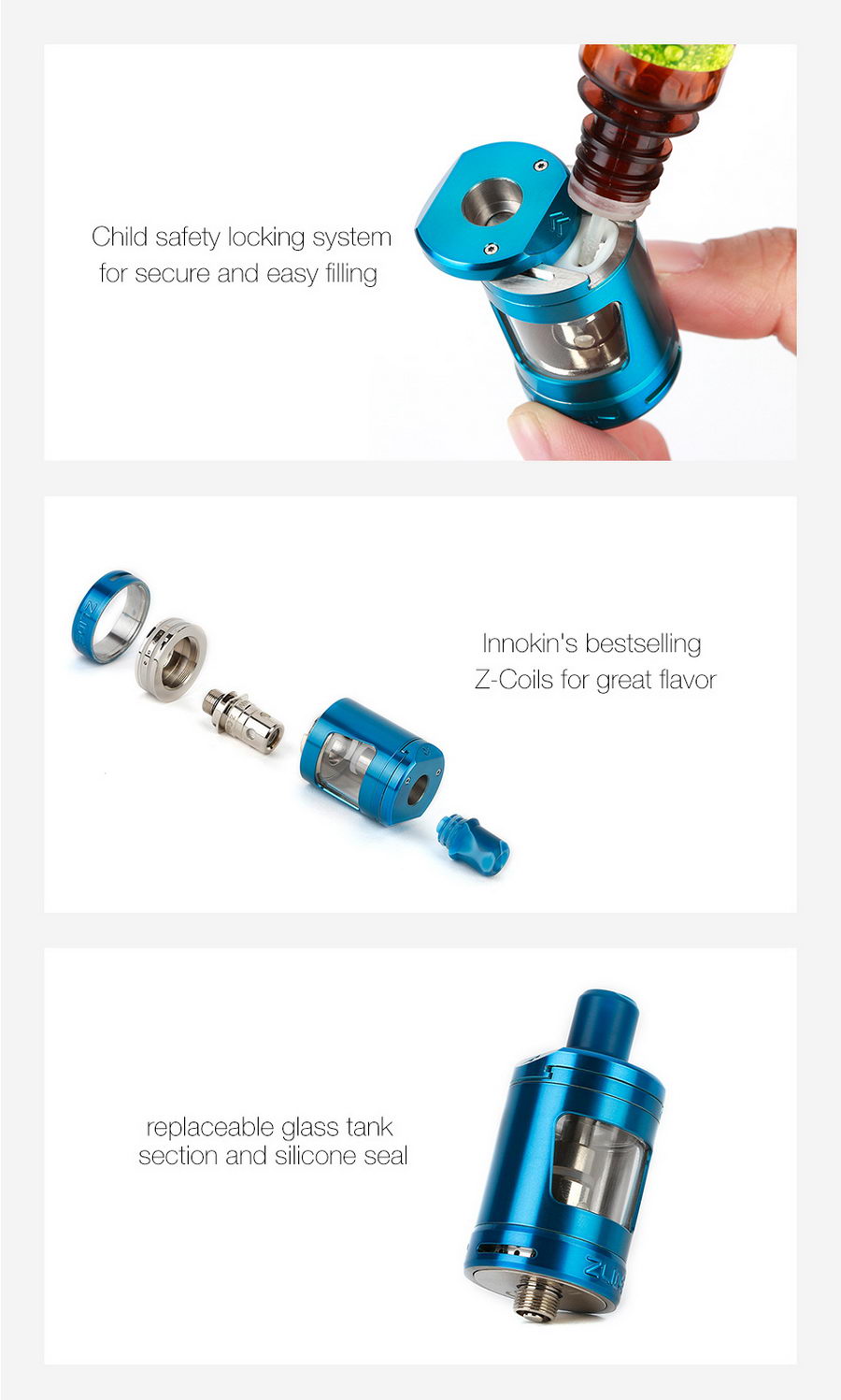 Zlide je kompatibilan sa svim Zenith (iliti Z Coil) glavama, koje možete pronaći na stranici Innokin Z Coil glave
