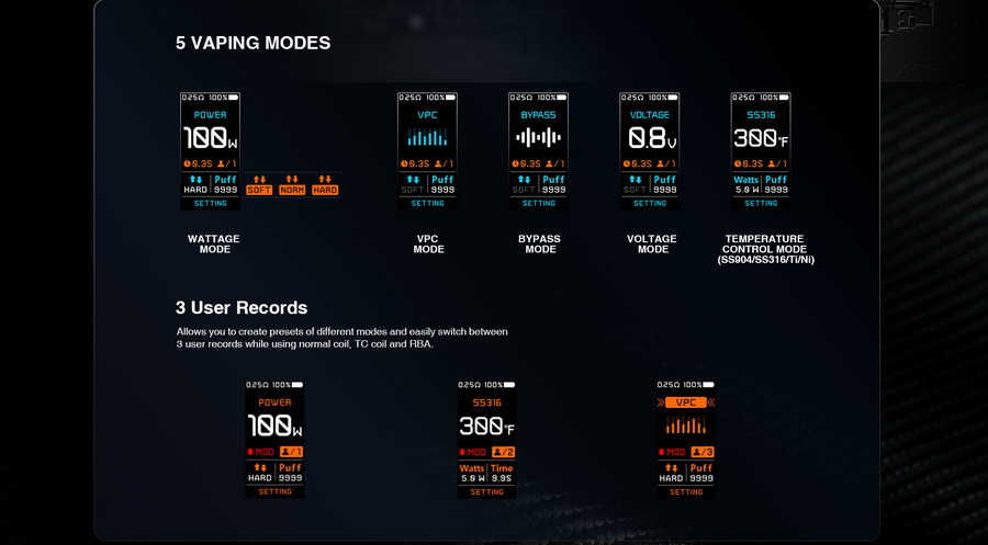 Quest čip ima i 3 načina na koji isporučuje vrednost struje koju je korisnik zadao. Drugim rečima, ima 3 Boost koraka: SOFT, MEDIUM i HARD. Tu korisnik može da izabere da li će uređaj da isporuči struju mekše, standardno ili jače nego što je to uobičajeno.