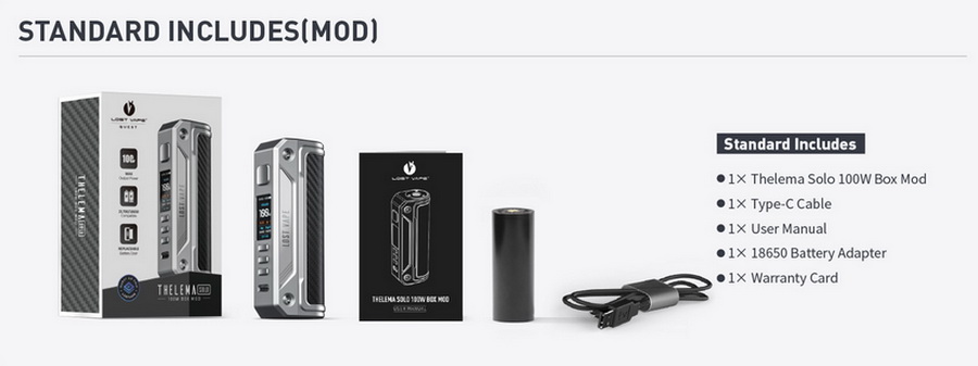 Nakon velike popularnosti Thelema DNA250C baterijskog moda, a nakon toga i njegove nešto jednostavnije, ali osetno jeftinije verzije pod nazivom Thelema Quest, kompanija Lost Vape nam sada pedstavlja i dimenzijama manji, ali jednako kvalitetan baterijski mod koji pokreće jedna 21700 Li-ion baterija. Thelemu Solo pokreće Quest elektronski čip iz kompanije Lost Vape.