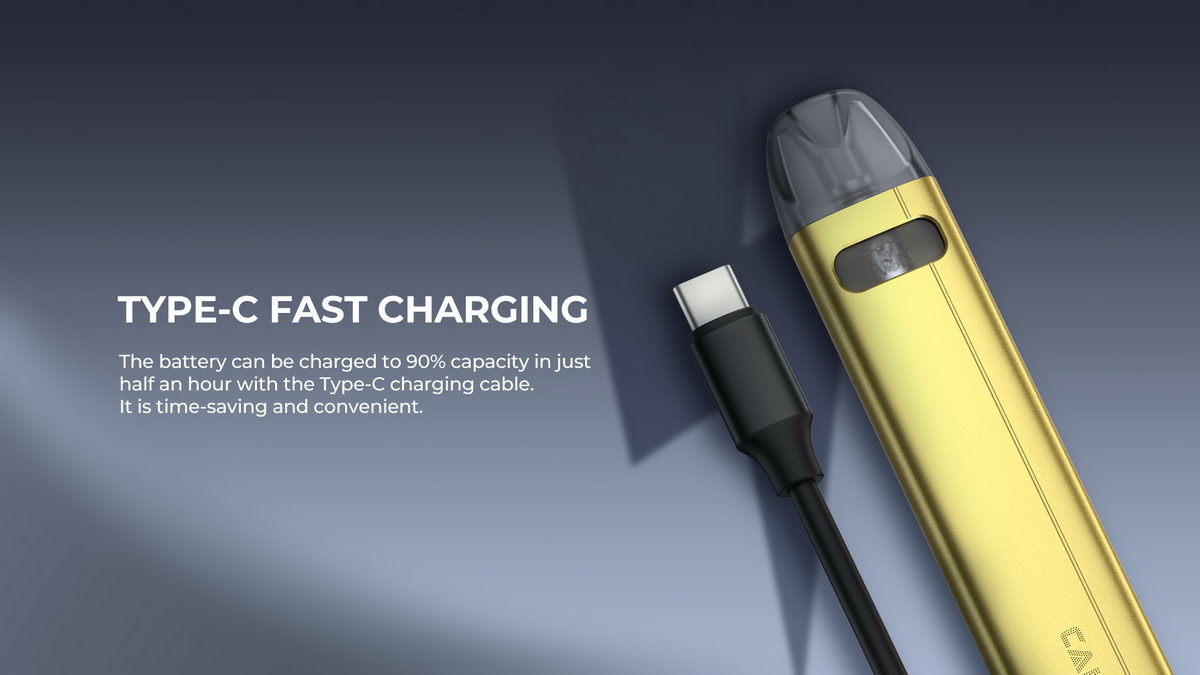 Baterija u Caliburn A2S modelu je kapaciteta 520mAh. Punjenje se vrši preko usb kabla nove generacije, Tip-C. Prilikom punjenja, maksimalna dozvoljena struja je 1A!