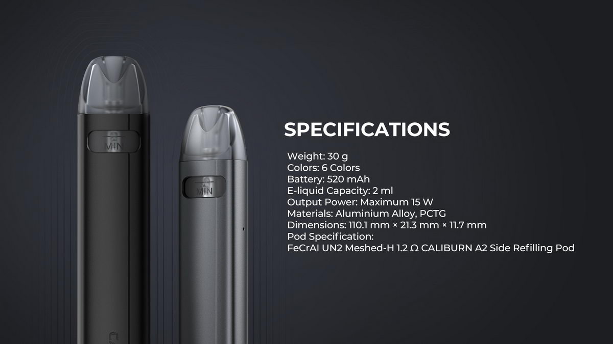 Novi POD uređaj iz kompanije Uwell, sa baterijom od 520mAh i automatskom aktivacijom grejača (povlačenjem pare). A2S je unapređena verzija popularne Caliburn A2 POD e-cigarete, još lakša i još jednostavnija za korišćenje.
