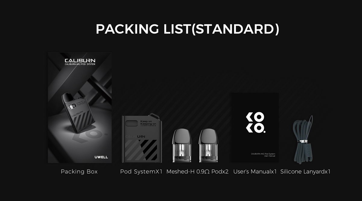 Popularni Caliburn A2 POD uređaj iz kompanije Uwell sada je dostupan i u Koko verziji. Svaka Koko verzija Caliburn POD e-cigarete predstavlja u suštini isti uređaj kao njen parnjak (ovde je to Caliburn A2), samo je oblik drugačiji. Klasičan POD u profilu ima oblik olovke, a Koko verzija iz profila ima oblik kvadrata.