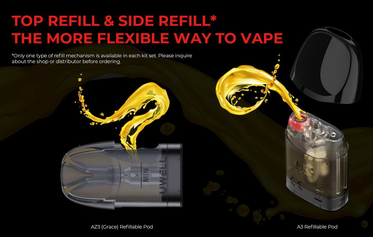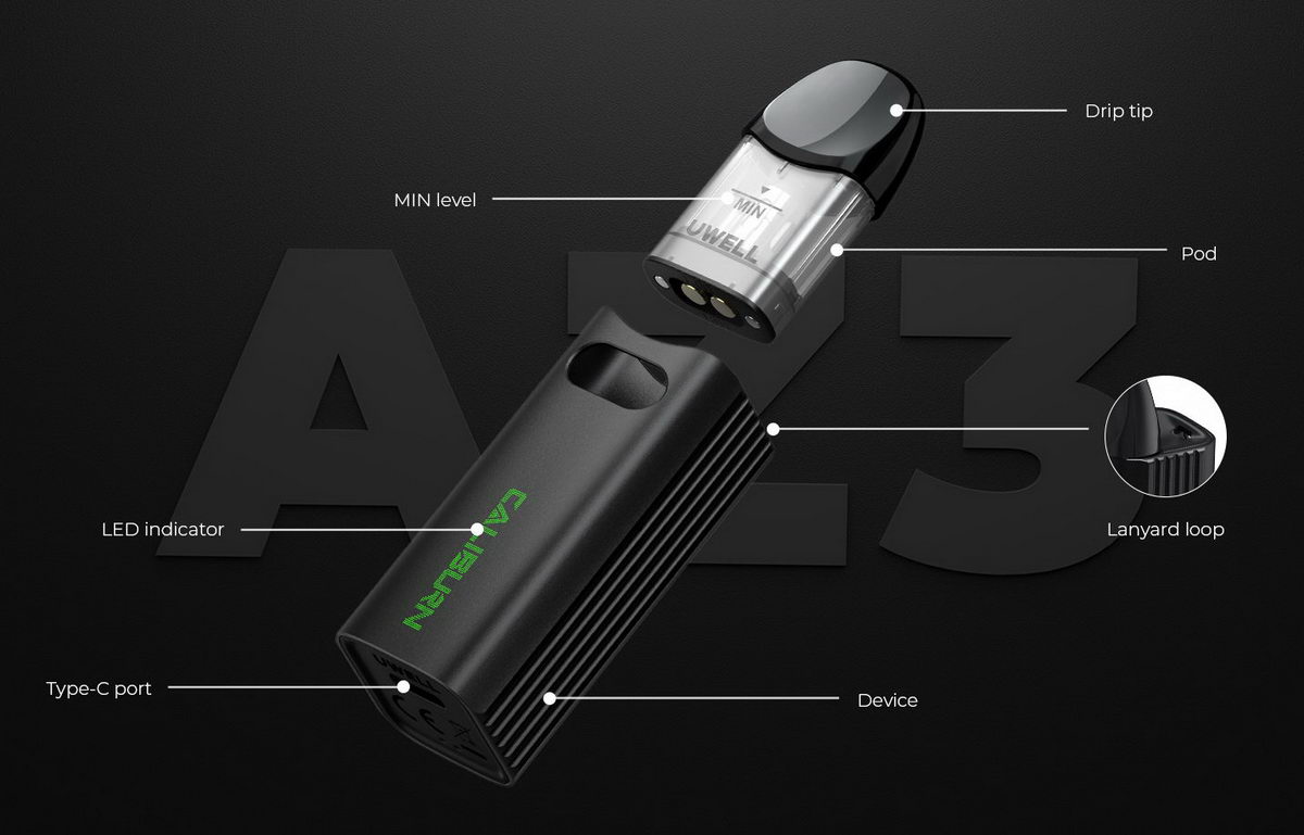 Caliburn AZ3 Grace je nova POD e-cigareta kompanije Uwell. Predstavljena je kao deo ZEGA kolekcije koju čine podovi novog dizajna, sa ciljem da se u što manjem pakovanju smeste što bolje performanse. Lice AZ3 pod e-cigarete je zaista malih dimenzija, a u njoj je baterija od čak 750mAh. Kao i kod prethodnih modela, i ovaj model donosi maksimalno lako korišćenje i fenomenalnu aromu. AZ3 koristi Caliburn kertridže nove generacije dostupne u više varijanti, za još bolje korisničko iskustvo.