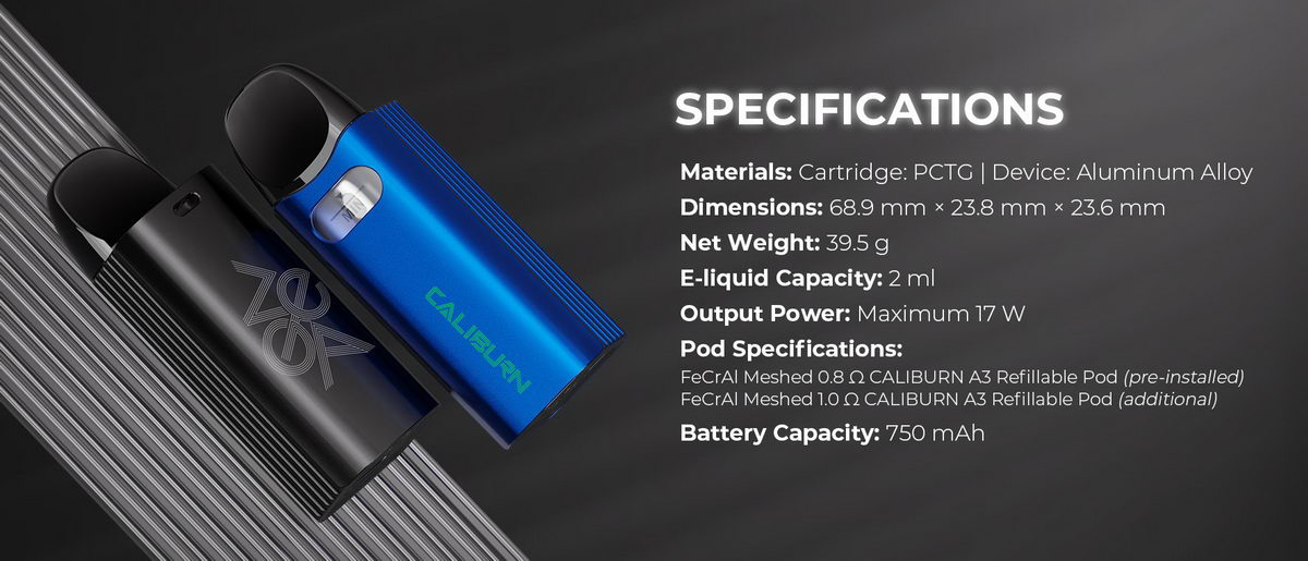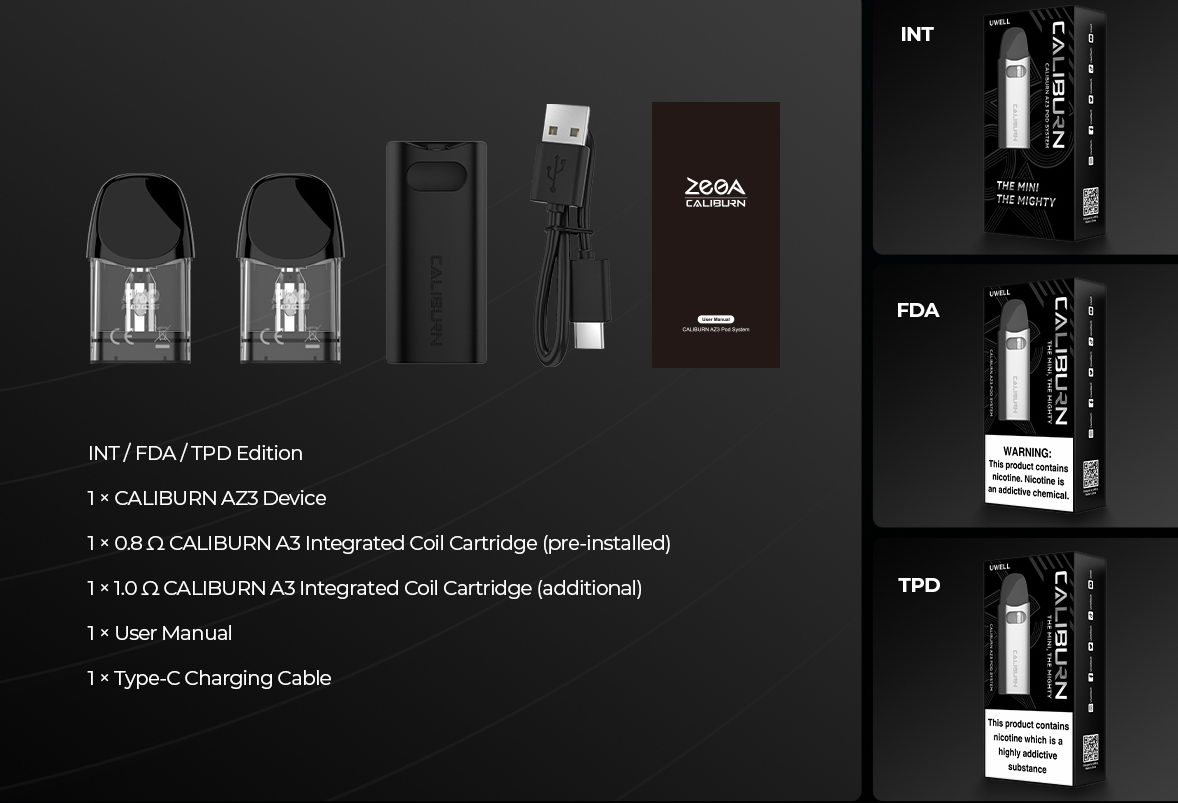 Caliburn AZ3 je nova POD e-cigareta kompanije Uwell. Deo ZEGA kolekcije podova koju čine uređaji novog dizajna, gde se u telu osetno manjih dimenzija spakuju fantastične performanse, AZ3 nam donosi bateriju od čak 750mAh.