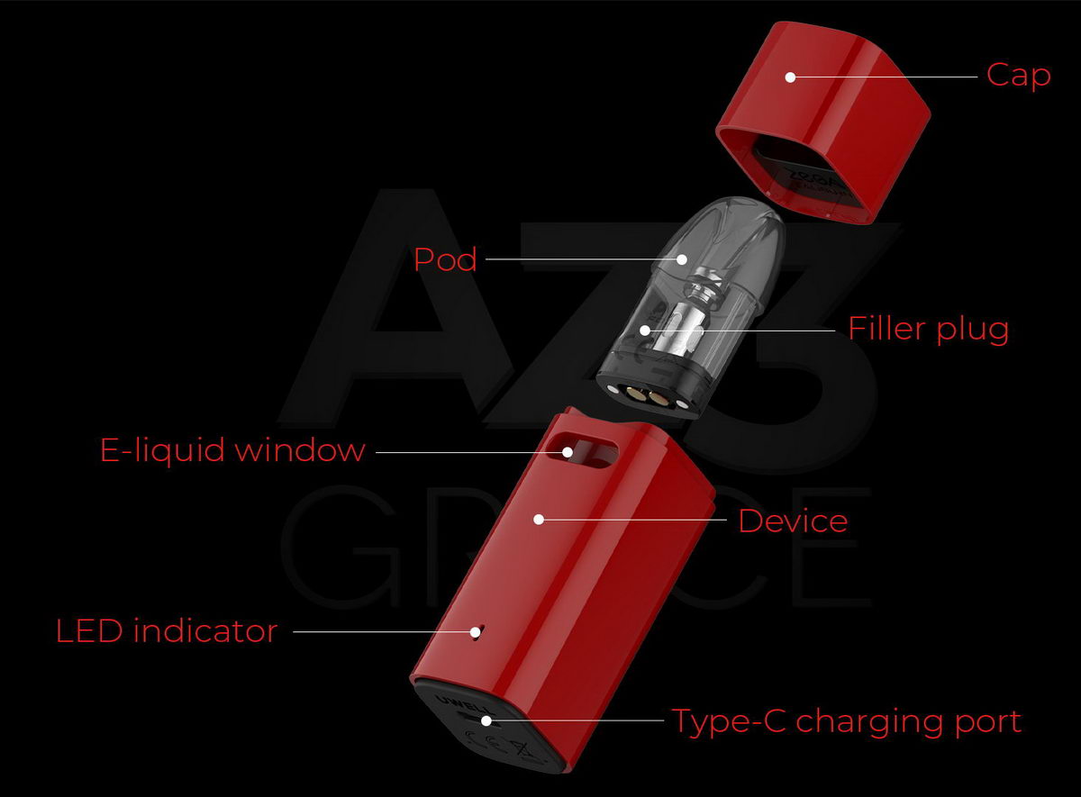 Caliburn AZ3 Grace je nova POD e-cigareta kompanije Uwell. Deo ZEGA kolekcije podova koju čine uređaji novog dizajna, gde se u telu osetno manjih dimenzija spakuju fantastične performanse, AZ3 nam donosi bateriju od čak 750mAh. Za razliku od klasičnog AZ3 modela, Grace verzija ima i poklopac (kapu) koja se magnetnom vezom može pričvrstiti na dno uređaja, dok ga koristite.