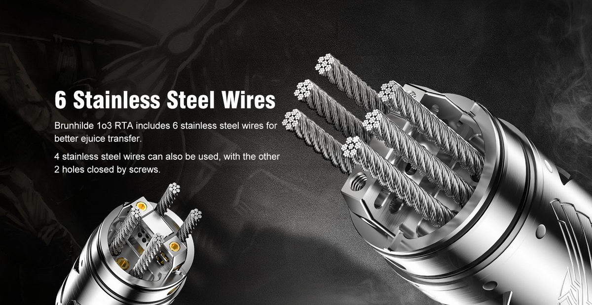 Tečnost se do grejača doprema preko sajli od najkvalitetnijeg nemačkog čelika. U atomizer su fabrički postavljene 4 sajle a maksimalno se može postaviti 6, po 3 sa svake strane.