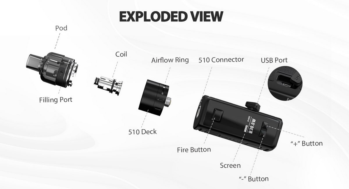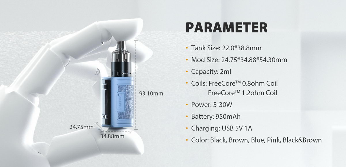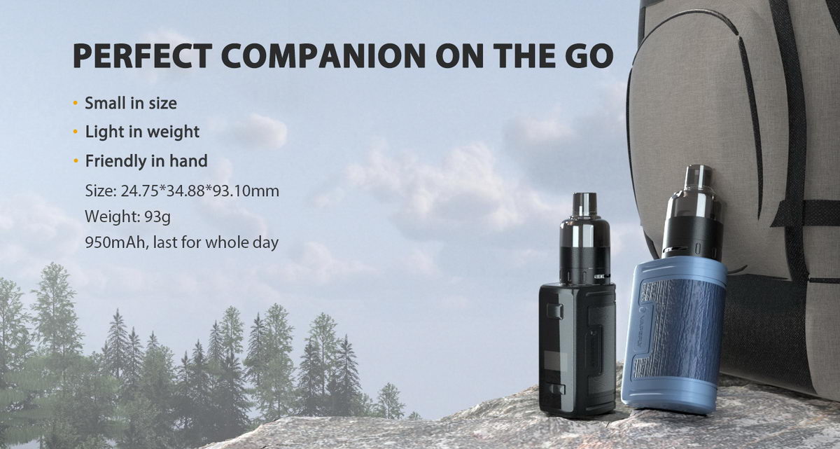 Moćan uređaj simpatičnog izgleda i sjajnih performansi. Baterija od 950mAh je otporna na vodu, prašinu i udarce po IP67 standardu, a atomizer je kapaciteta 2ml.