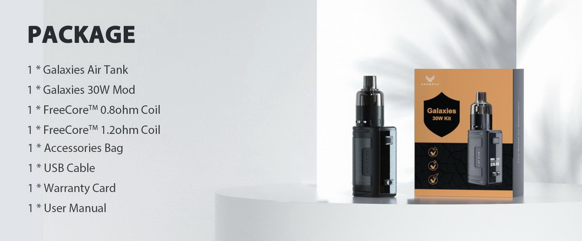 Galaxies Air je jednostavan atomizer kapaciteta 2ml. Atomizer koristi zamenske glave sa oznakom FreeCore G, dostupne su u dve verzije (0.8 oma i 1.2 oma). Link je neposredno ispod ovog teksta, u kategoriji POVEZANI PROIZVODI.