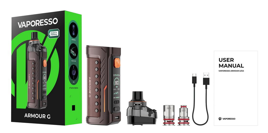 Vaporesso je predstavio dva nova modela e-cigareta, Armour G i Armour GS. Vizuelno i po performansama su gotovo identični, razlikuju se samo po tome što Armour G pokreće integrisana baterija kapaciteta 3000mAh a u veći brat pokreće izmenljiva Li-ion 18650 baterija.