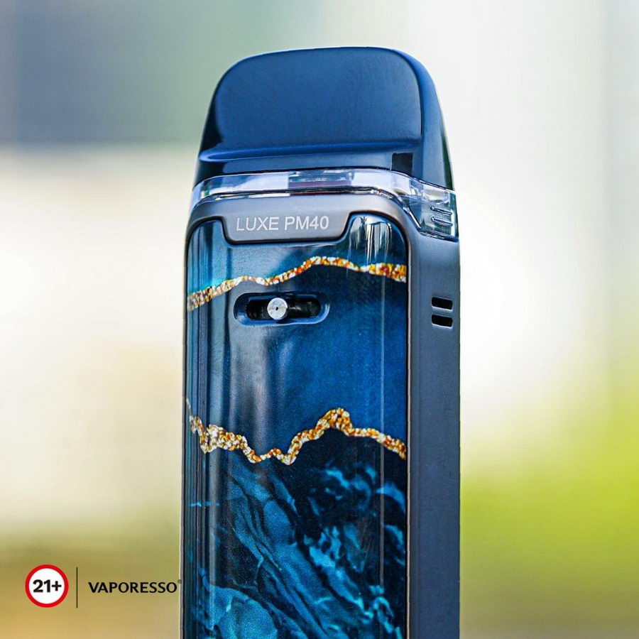 Vaporesso LUXE PM40 1800mAh VW POD. U malom telu uređaja Vaporesso je spakovao bateriju od 1800mAh i tank od čak 4ml, što ga uz sjajan dizajn preporučuje korisnicima koji žele moćan uređaj što manjih dimenzija.