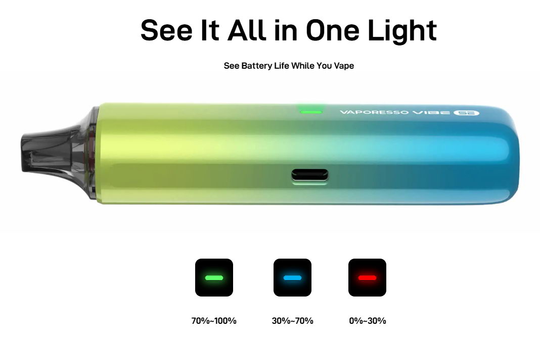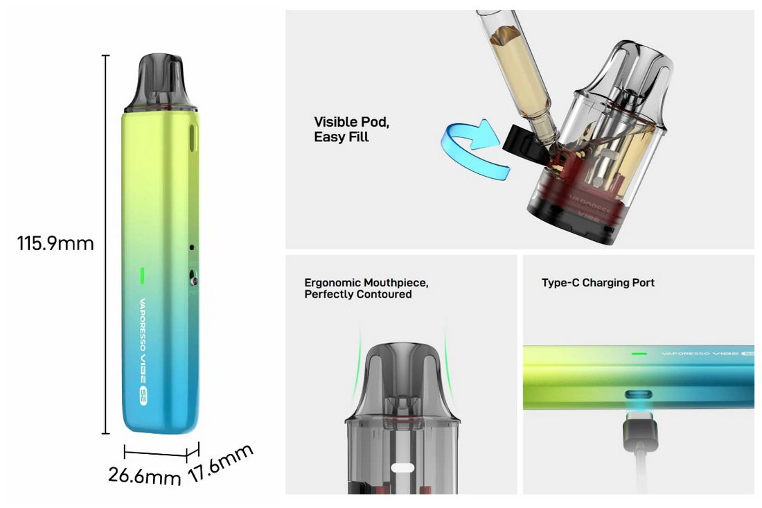 Nova kolekcija POD uređaja kompanije Vaporesso sa oznakom Vibe donosi maksimalno jednostavne uređaje sa impozantnim performansama. U Vibe kertridže je implementirana nova Dual Mesh tehnologija koja menja otpor grejača u zavisnosti od režima rada koji je korisnik aktivirao. Na taj način korisnik osetno menja kako ukus i intezitet, tako i trajanje samih kertridža.