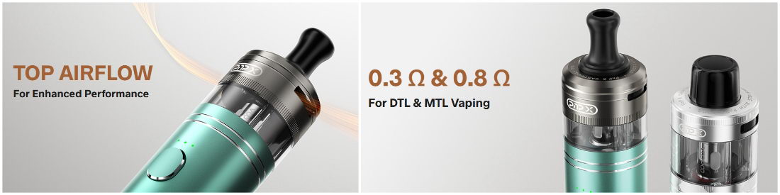Kertridž nema integrisane grejače, nego se zamenske glave mogu menjati zasebno. U ponudi su dve varijante kertridža, za MTL i DTL korišćenje.