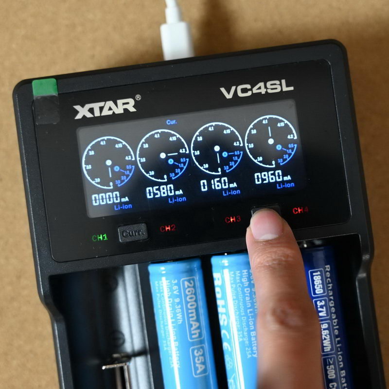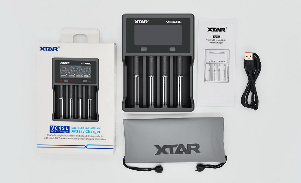 VC4SL je unapređena verzija popularnog XTAR VC4S punjača, kao nove opcije donosi povezivanje preko usb-c kabla i mogućnost izbora jačine struje punjenja. Ukoliko VC4SL priključite na QC strujni adapter, Li-Ion baterije će puniti strujom od 3A (jedna baterija), 2A (dve baterije) ili 1A/0.5A (3 ili 4 baterije). Prilikom punjenja možete kombinovati, tj. može da istovremeno puni baterije različitih tipova. Punjenje strujom iznad 1A po pravilu smanjuje kapacitet Li-ion baterija, pa se ne preporučuje kao redovna praksa.